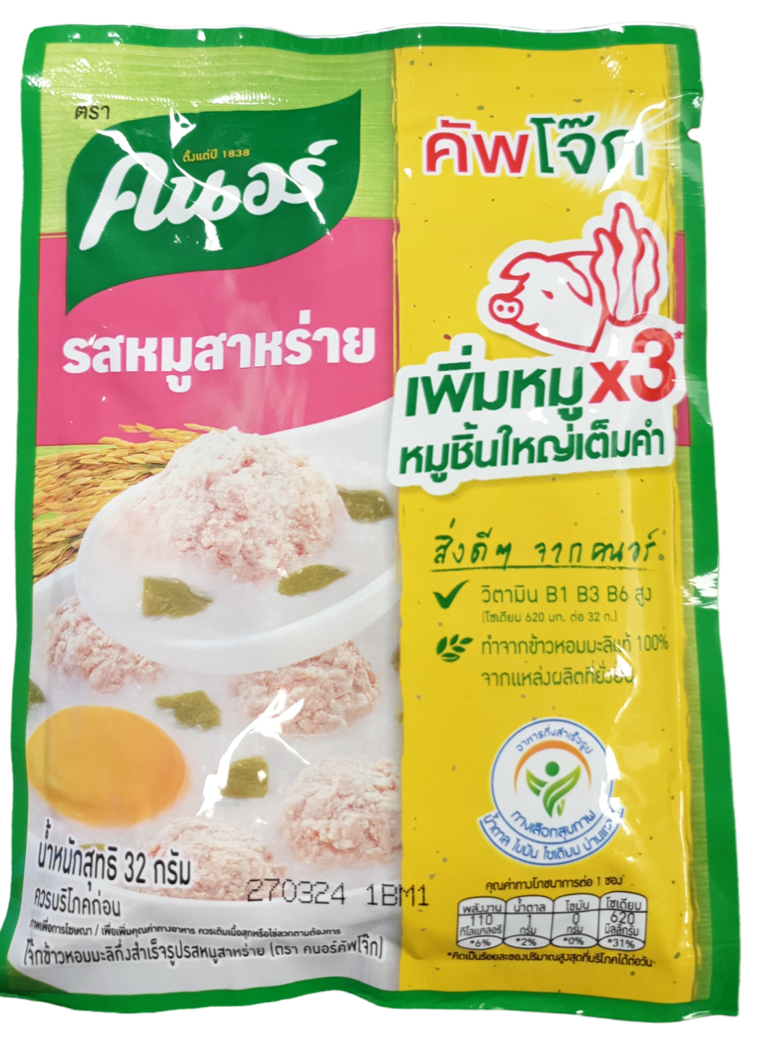 Inst. Rice Porridge Pork+Seaweed Flavor(Pack) Knor 32g