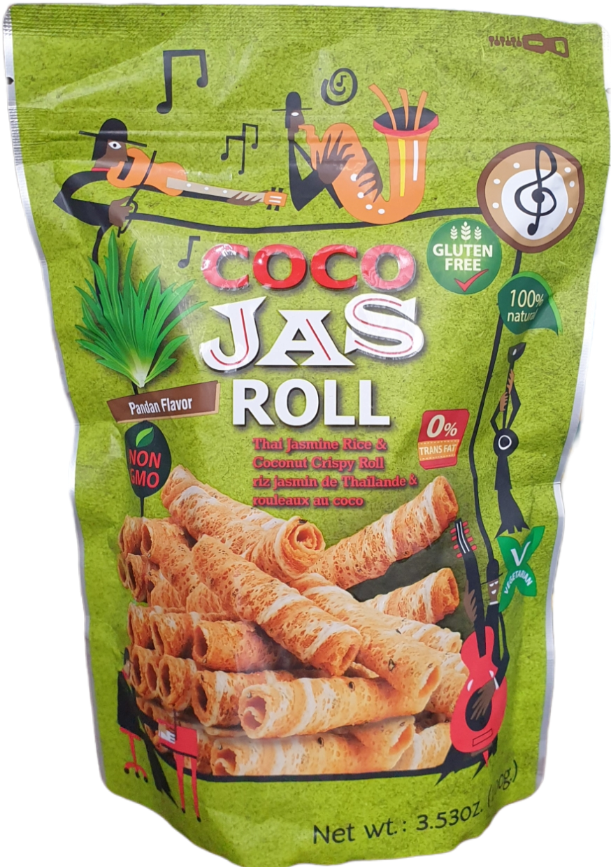 Coco Jas Roll Pandan Flavor 100g (Happy Riz) ขนมทองมัวนรสใบเตย